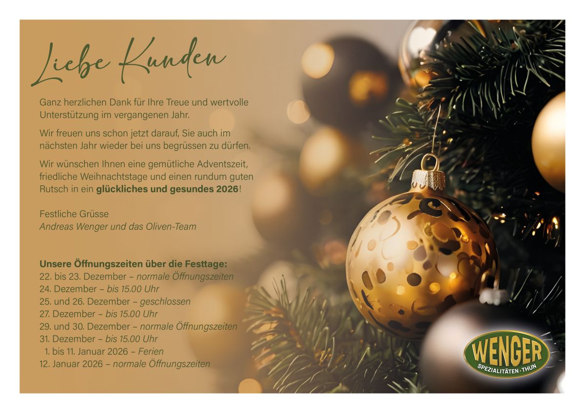 Wir wünschen Ihnen eine gemütliche Adventszeit, friedliche Weihnachtstage und einen rundum guten Rutsch in ein glückliches und gesundes 2026!
